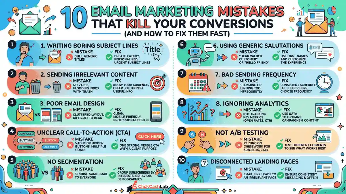 Understanding Email Marketing Conversion Killers Fix Them Fast: 10 Email Marketing Mistakes Kill Your Conversions: Email marketing still sits at the heart of digital revenue generation, even in 2026, but it has become far more competitive and unforgiving. Every inbox is crowded, attention spans are shrinking, and users are far more selective about what they […]